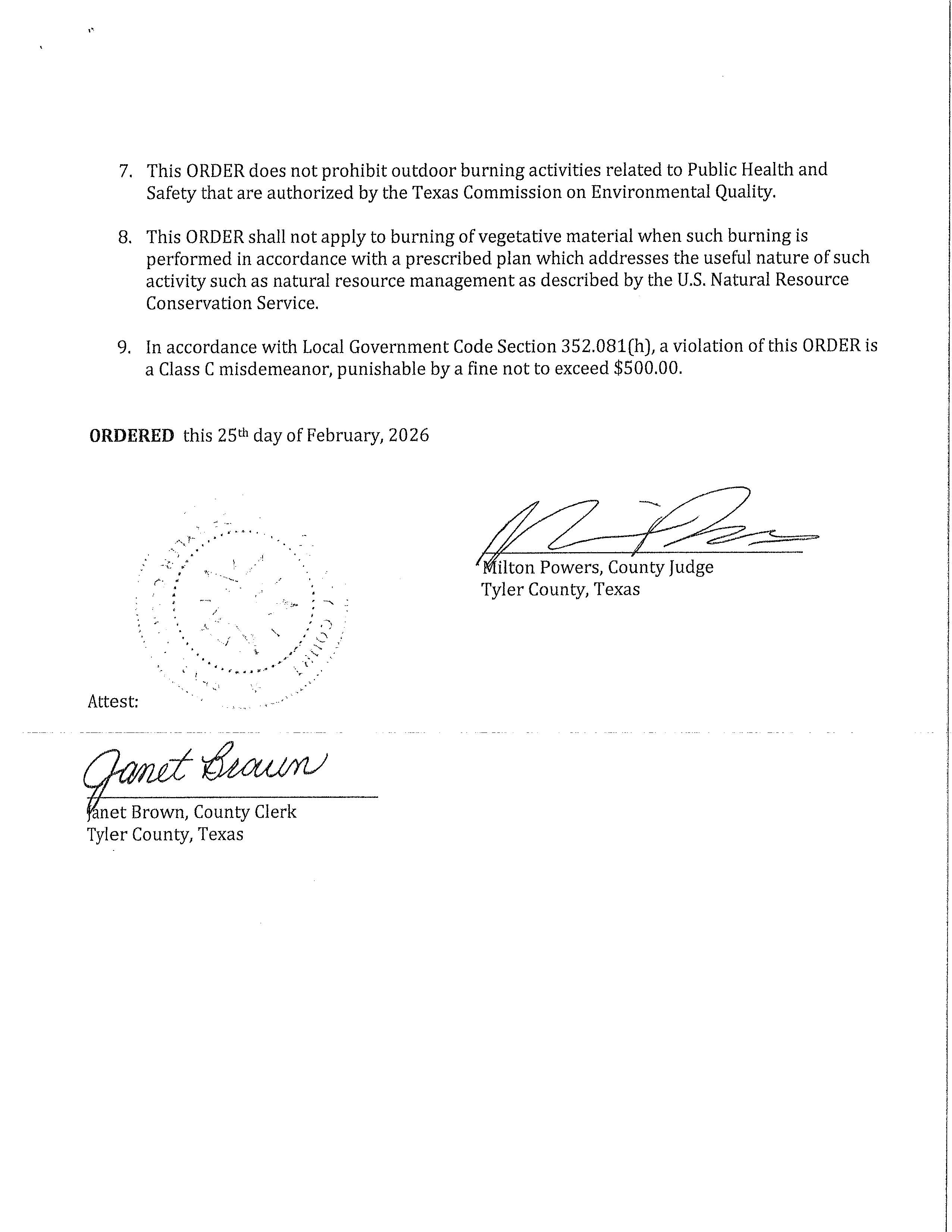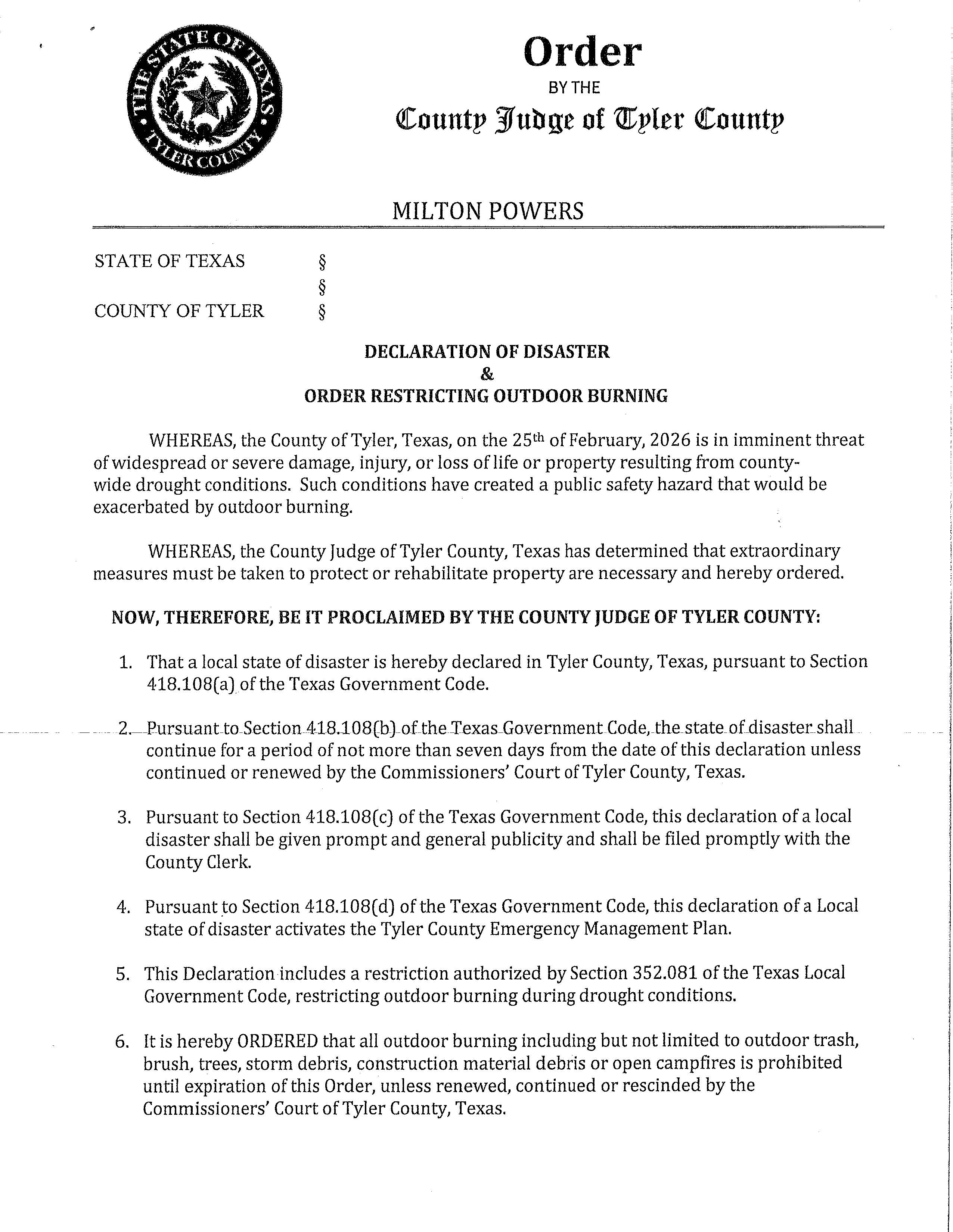 Burn Ban Issued February 25, 2026 Click Here Δ to Read Order
