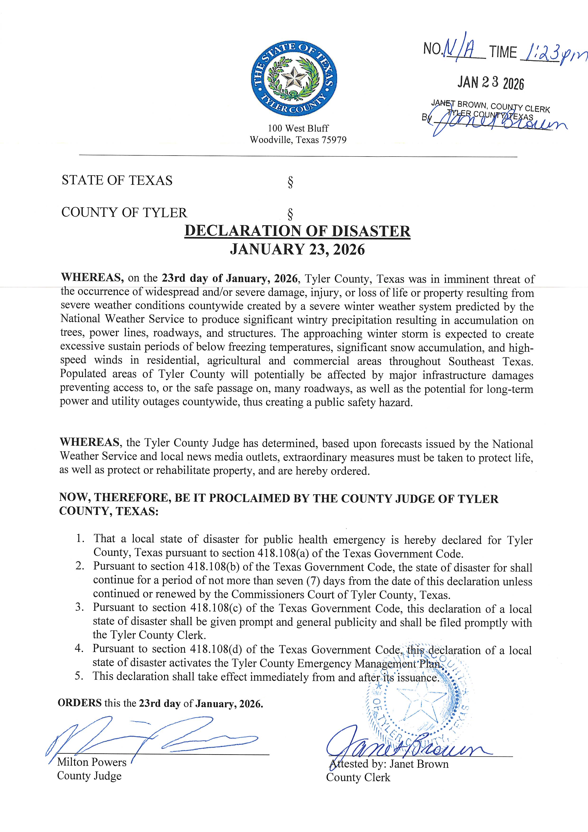 DECLARATION OF DISASTER JANUARY 23, 2026